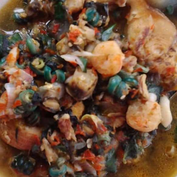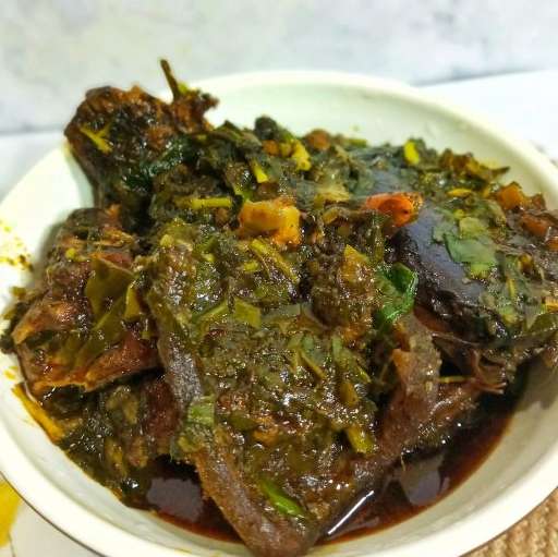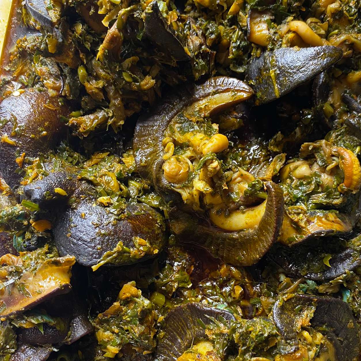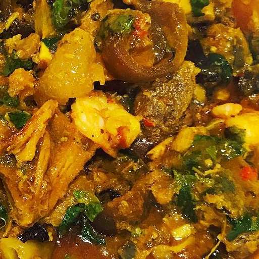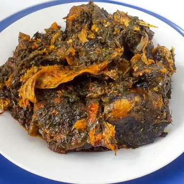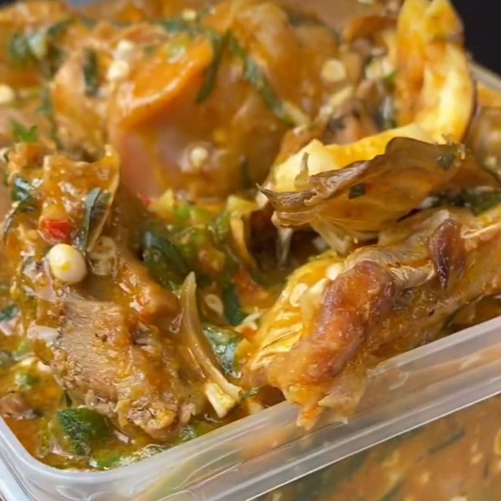 Native soup with Cow tail or Goat meat and Garri or Fufu
