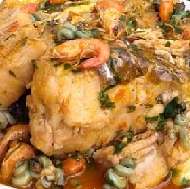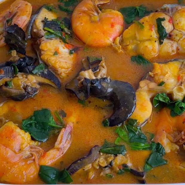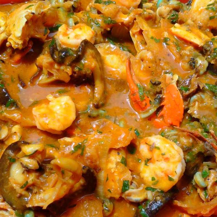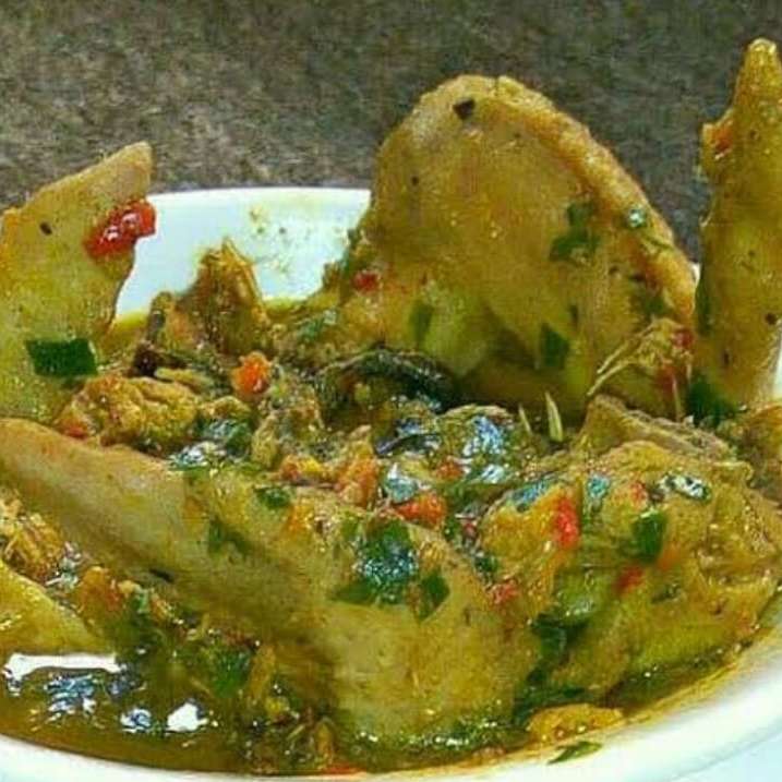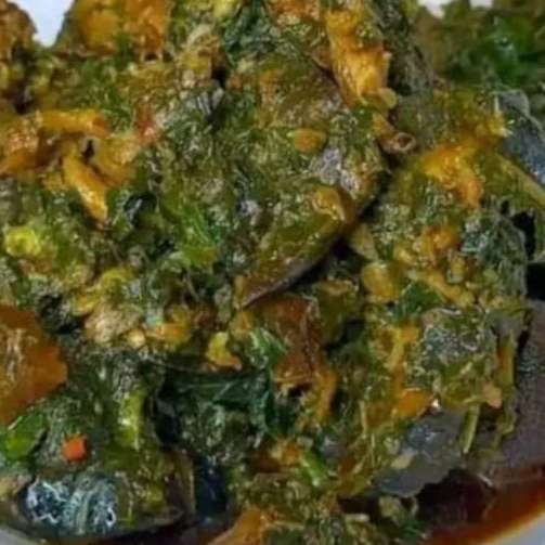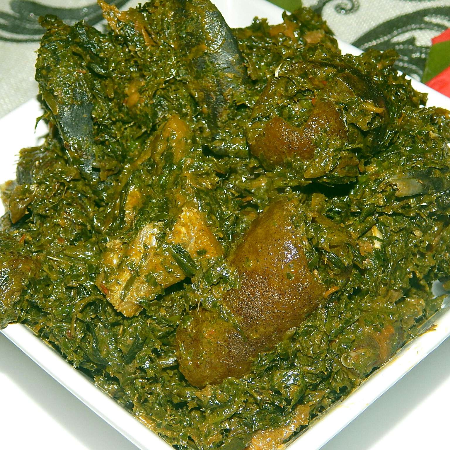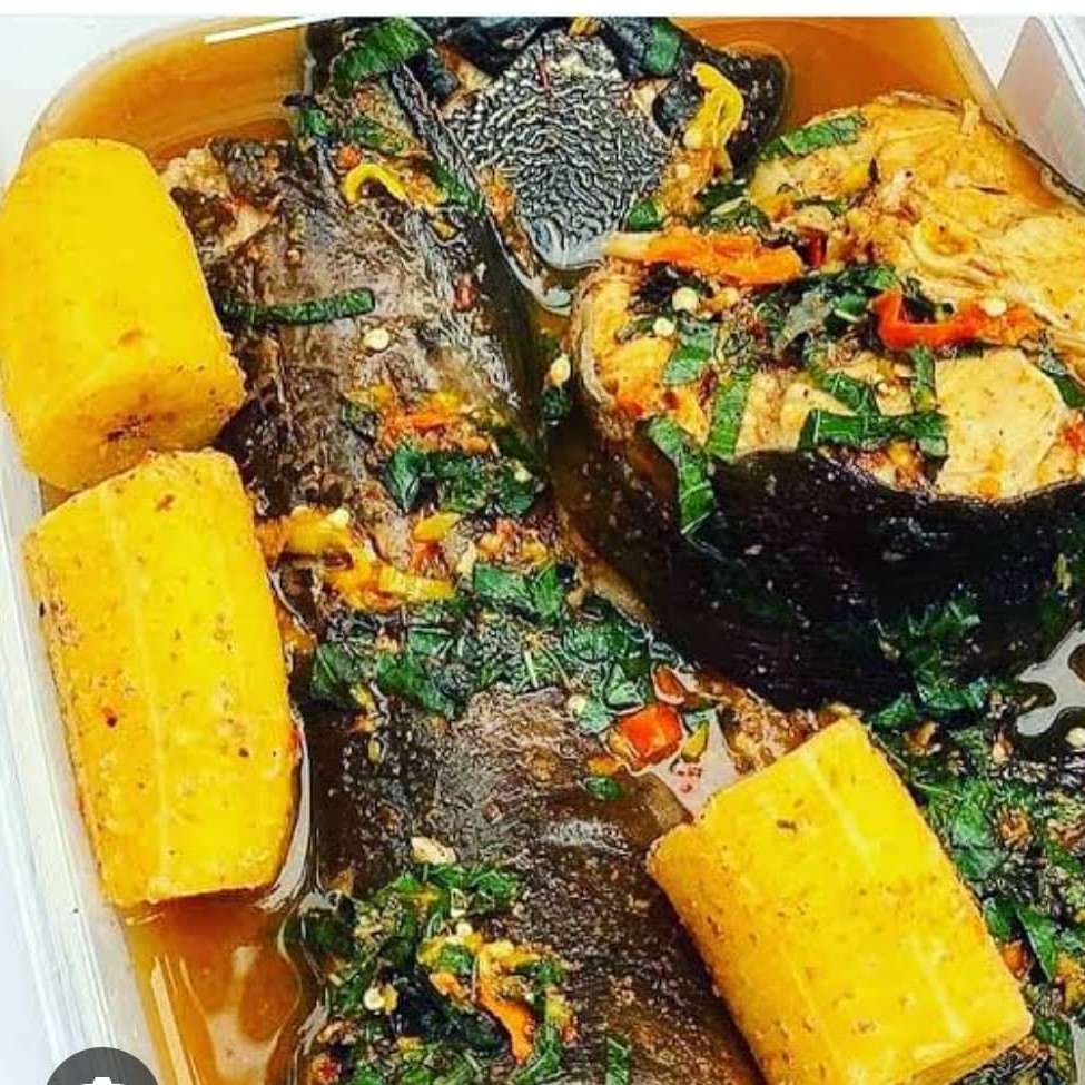 Native soup with Cow tail or Goat meat and Garri or Fufu