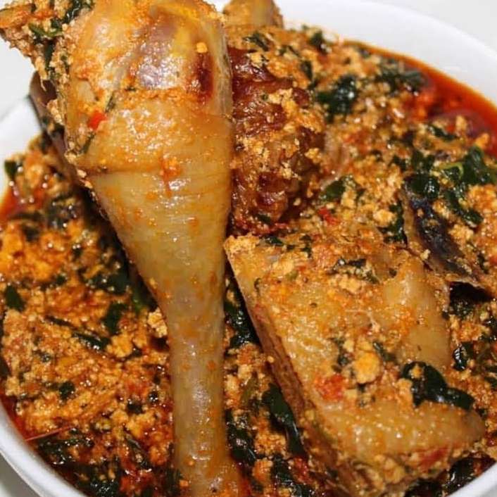 Egusi with Cow tail or Goat meat and Garri or fufu