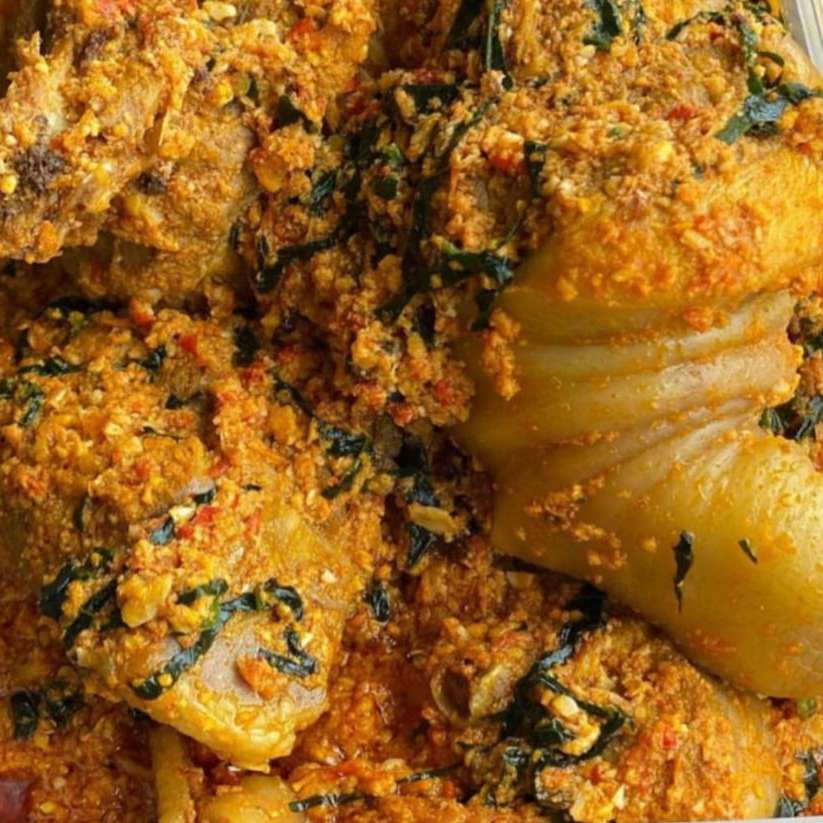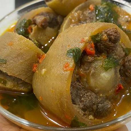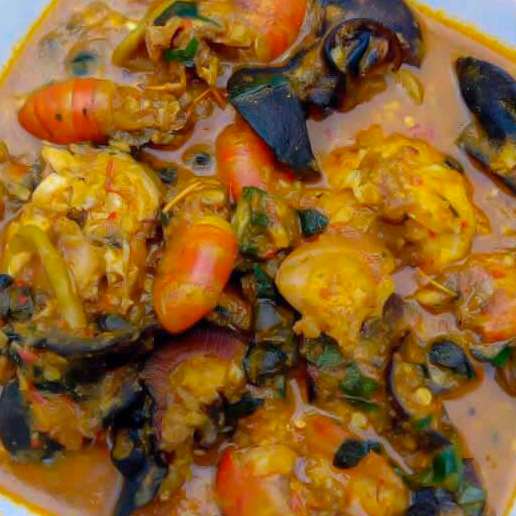 Native soup with Cow tail or Goat Meat and semo or Wheat